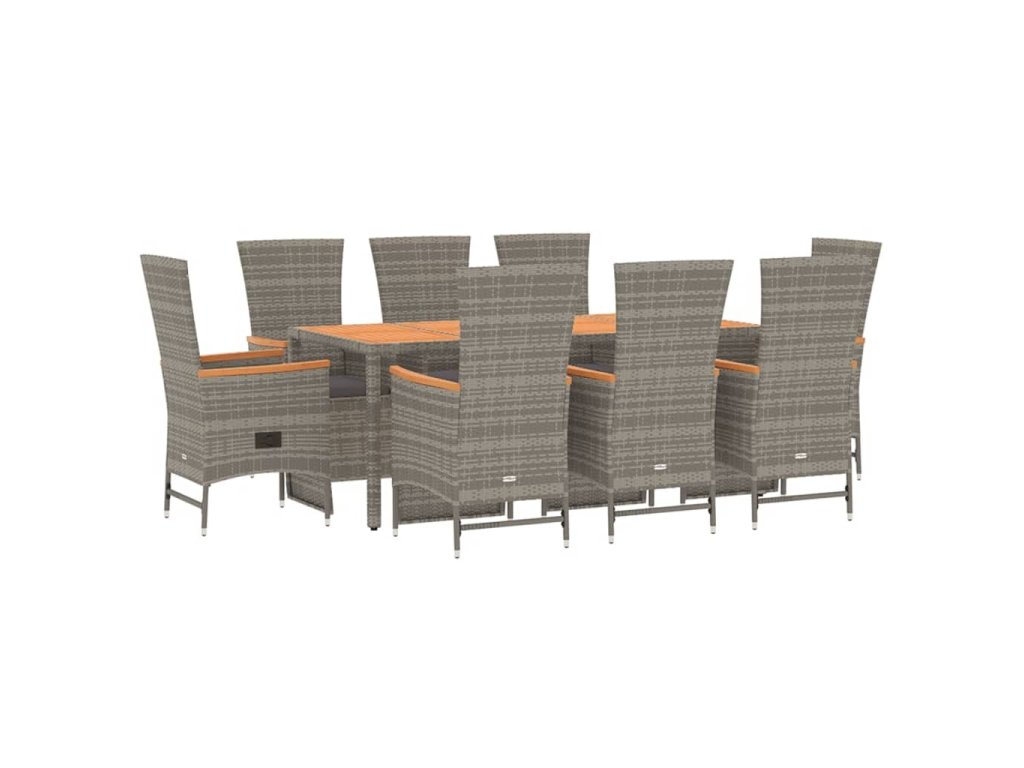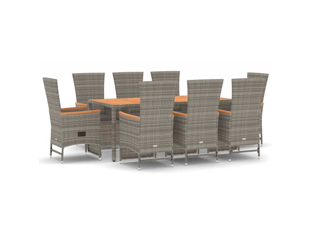 9dílný zahradní jídelní set s poduškami šedý polyratan 3157560