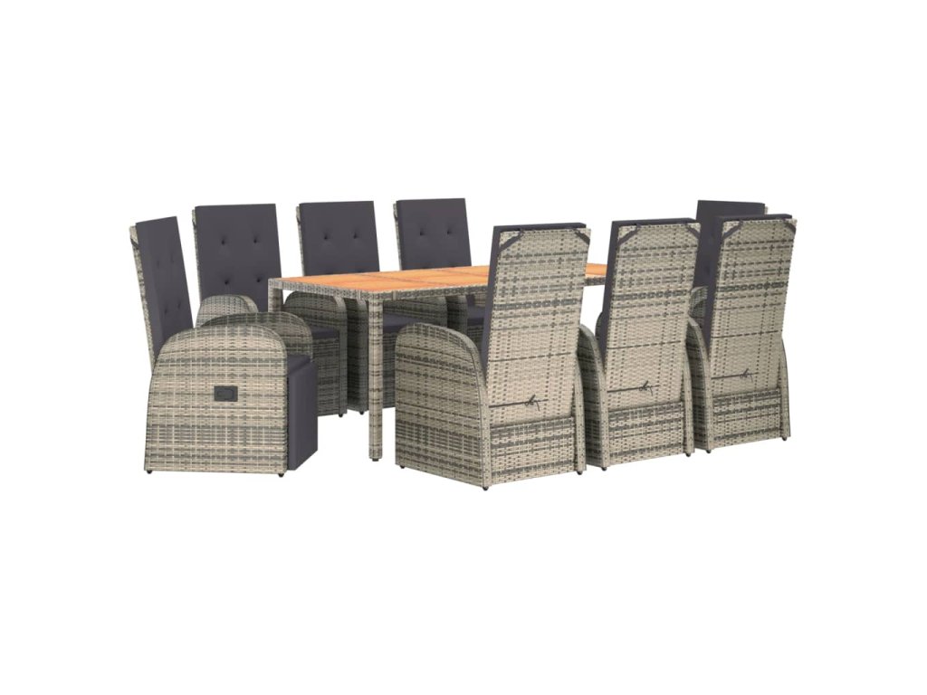 9dílný zahradní jídelní set s poduškami šedý polyratan 3157590