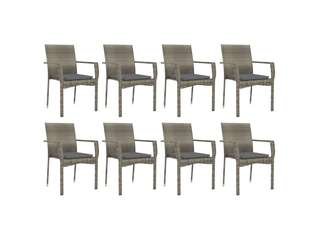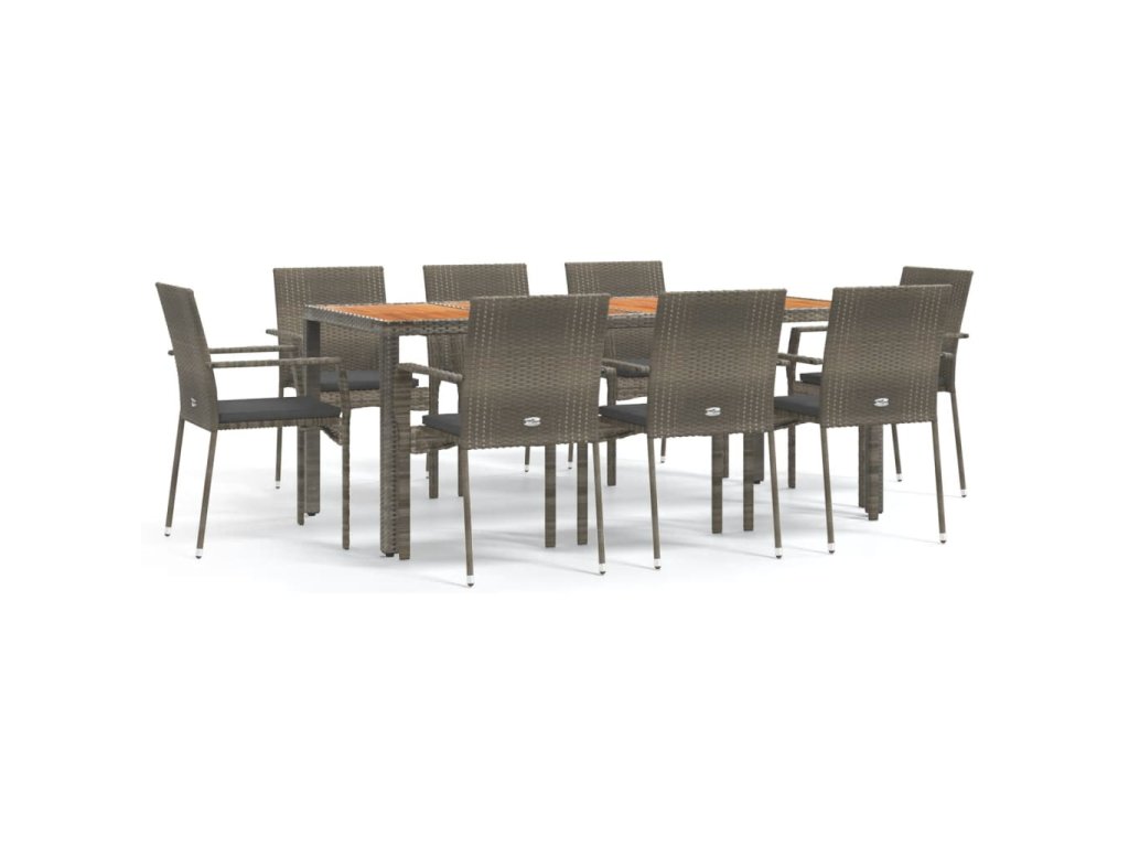 9dílný zahradní jídelní set s poduškami šedý polyratan 3184998