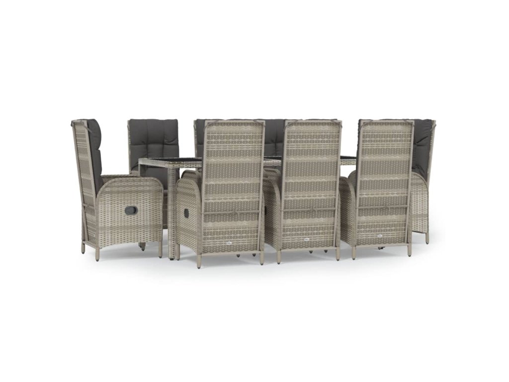9dílný zahradní jídelní set s poduškami šedý polyratan 3185028
