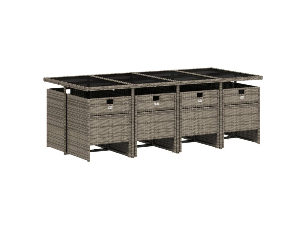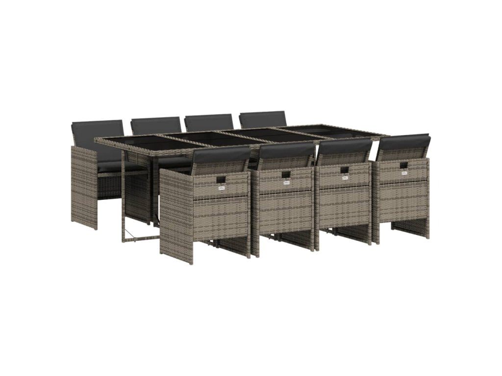 9dílný zahradní jídelní set s poduškami šedý polyratan 3210560