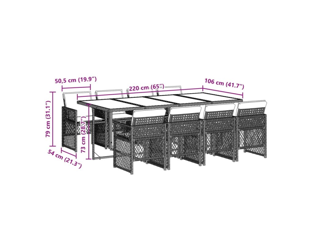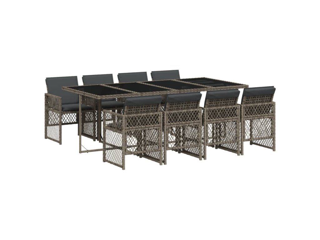 9dílný zahradní jídelní set s poduškami šedý polyratan 3210740