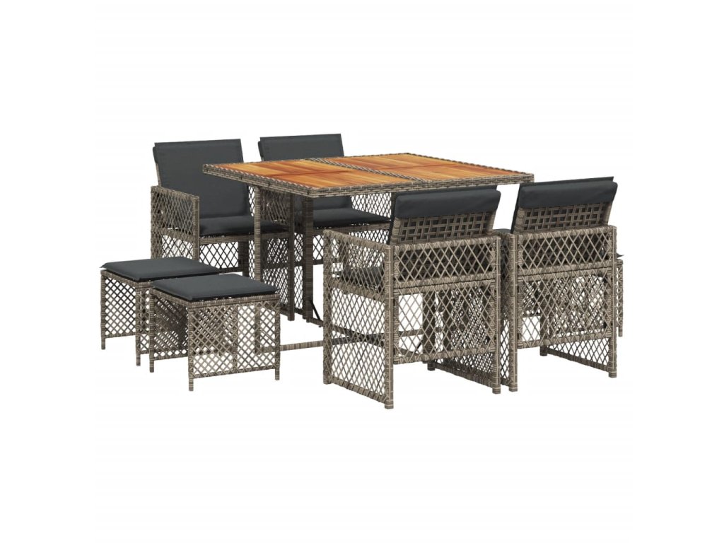 9dílný zahradní jídelní set s poduškami šedý polyratan 3210782
