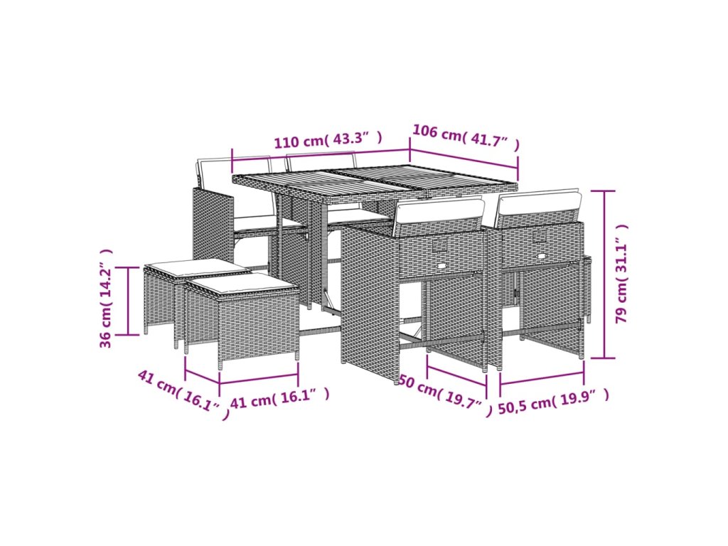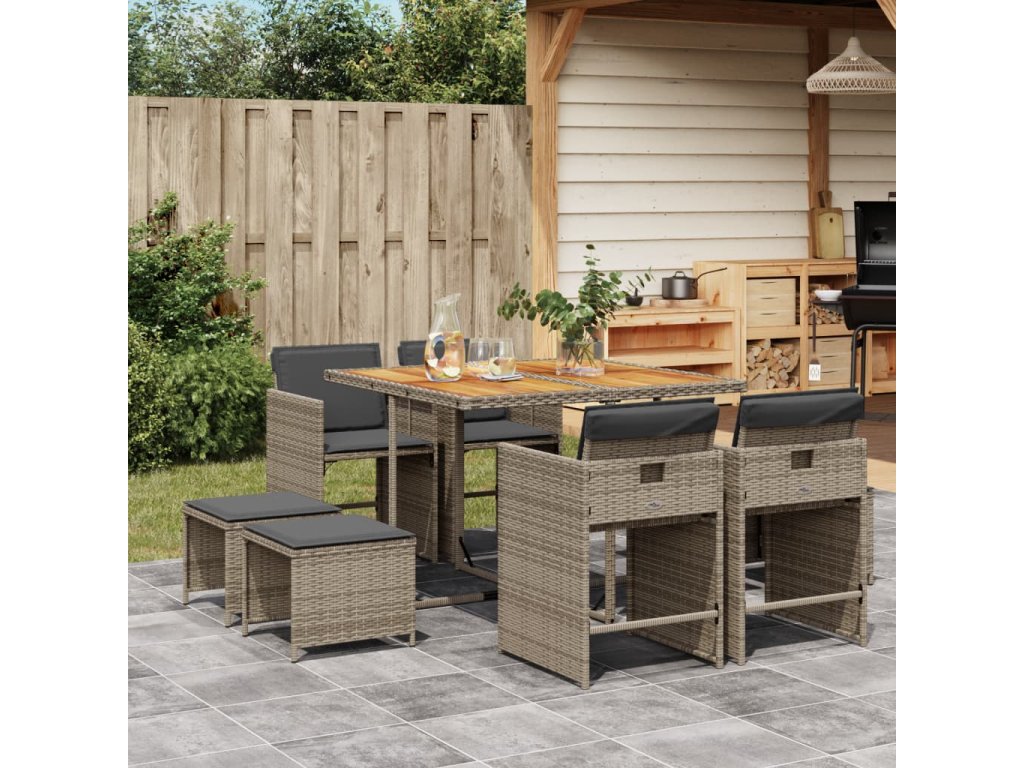 9dílný zahradní jídelní set s poduškami šedý polyratan 3211142