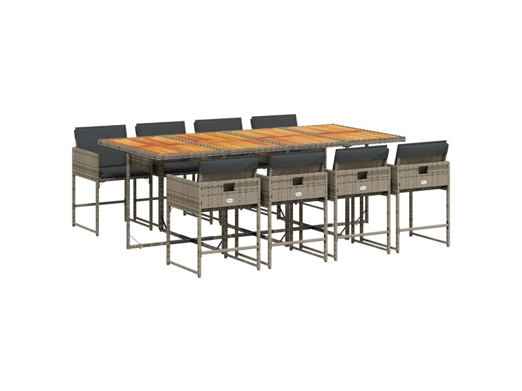 9dílný zahradní jídelní set s poduškami šedý polyratan 3211286