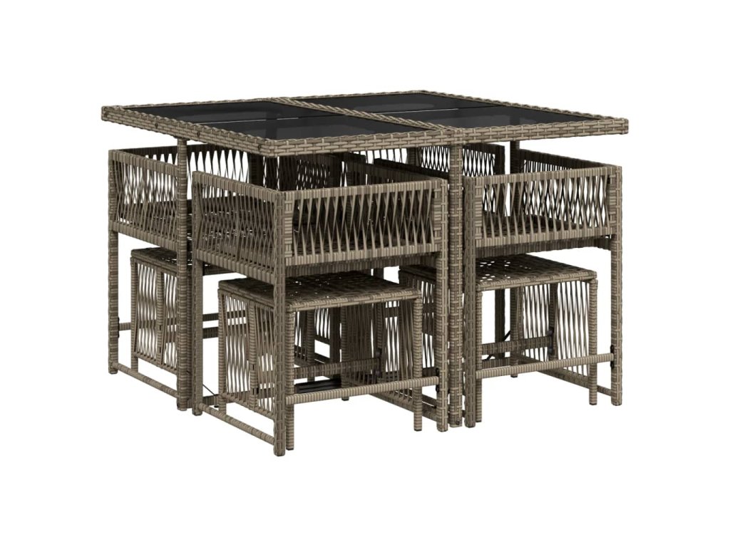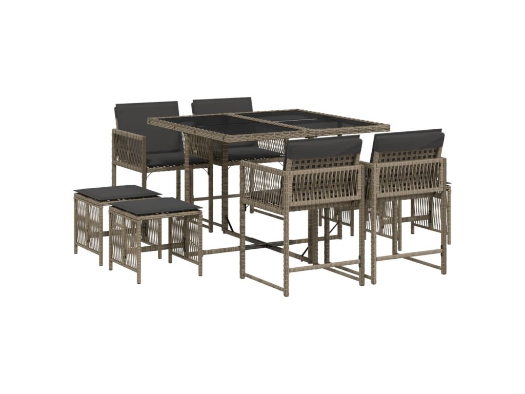 9dílný zahradní jídelní set s poduškami šedý polyratan 3211496