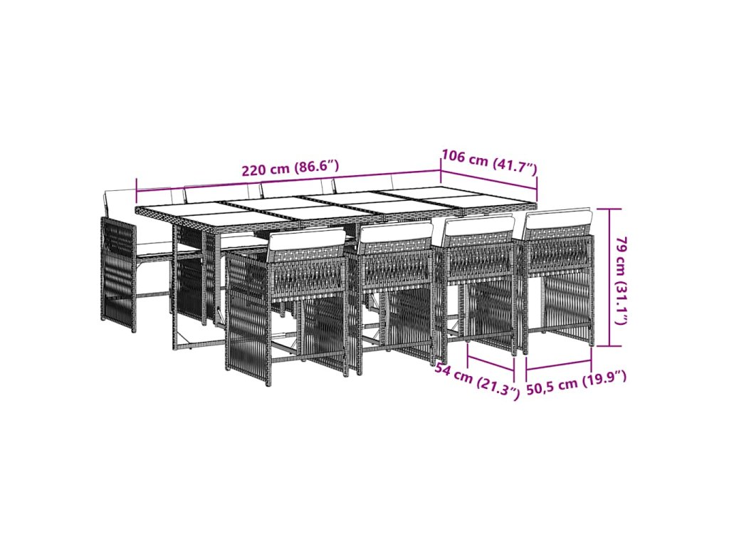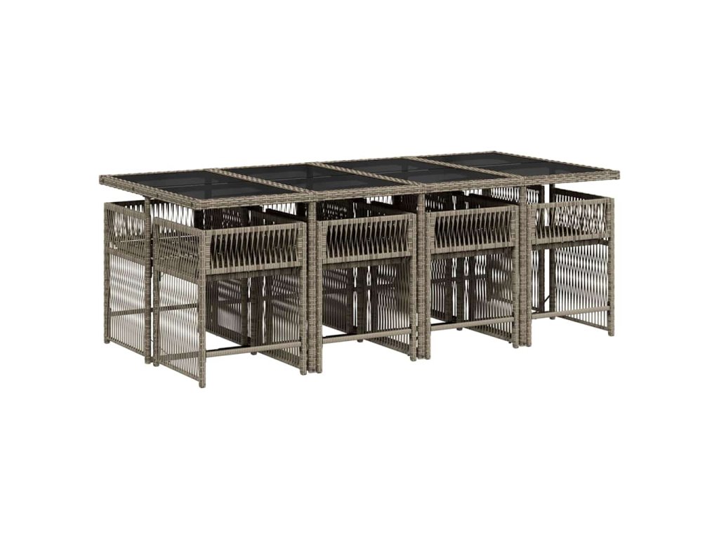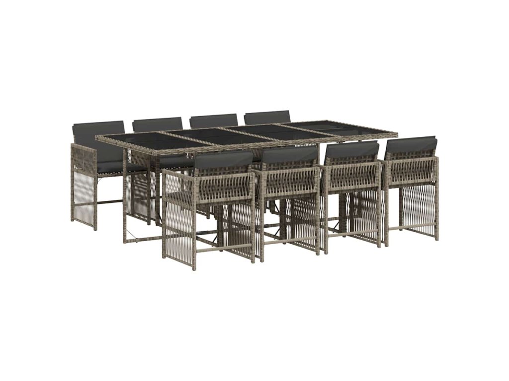 9dílný zahradní jídelní set s poduškami šedý polyratan 3211640