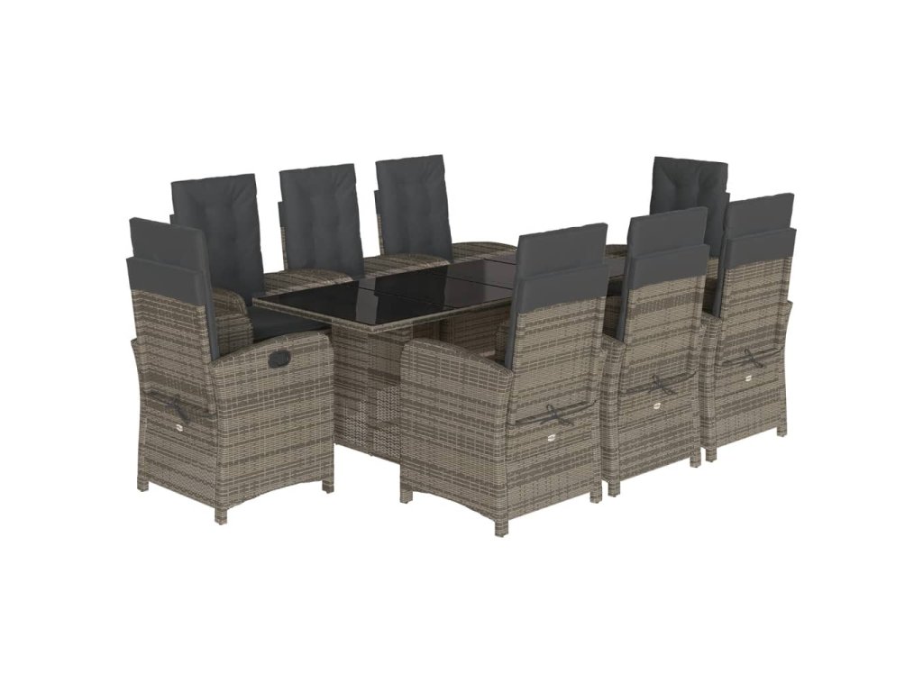 9dílný zahradní jídelní set s poduškami šedý polyratan 3212258