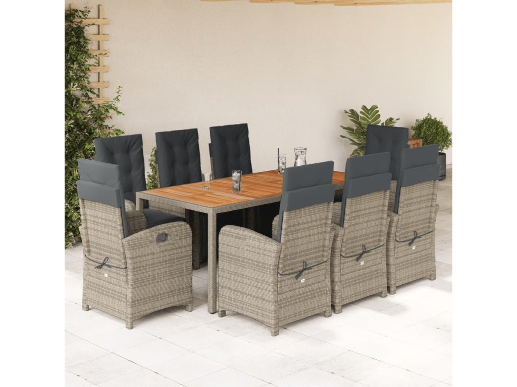 9dílný zahradní jídelní set s poduškami šedý polyratan 3212485