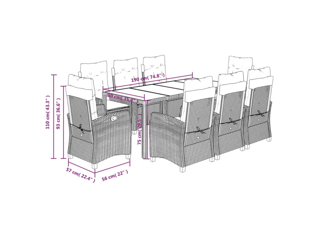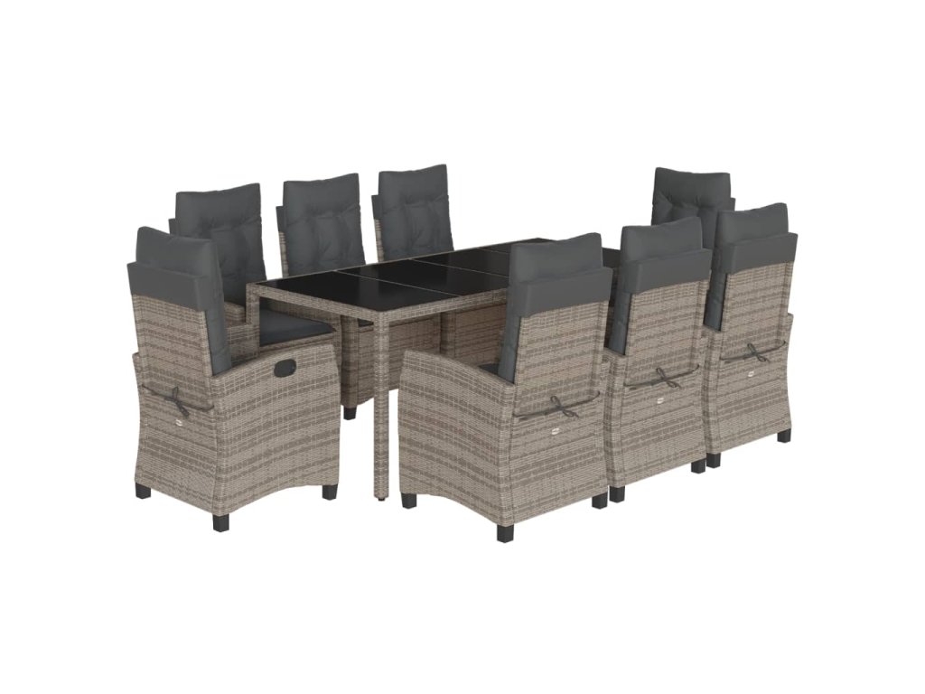 9dílný zahradní jídelní set s poduškami šedý polyratan 3212651