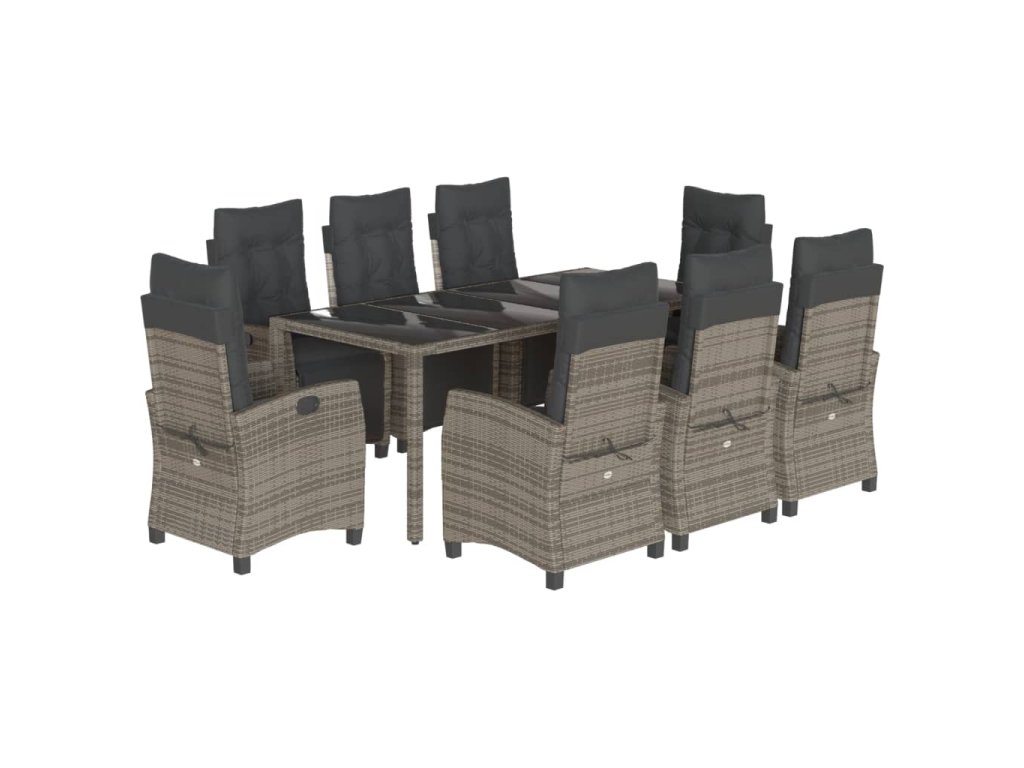 9dílný zahradní jídelní set s poduškami šedý polyratan 3212899