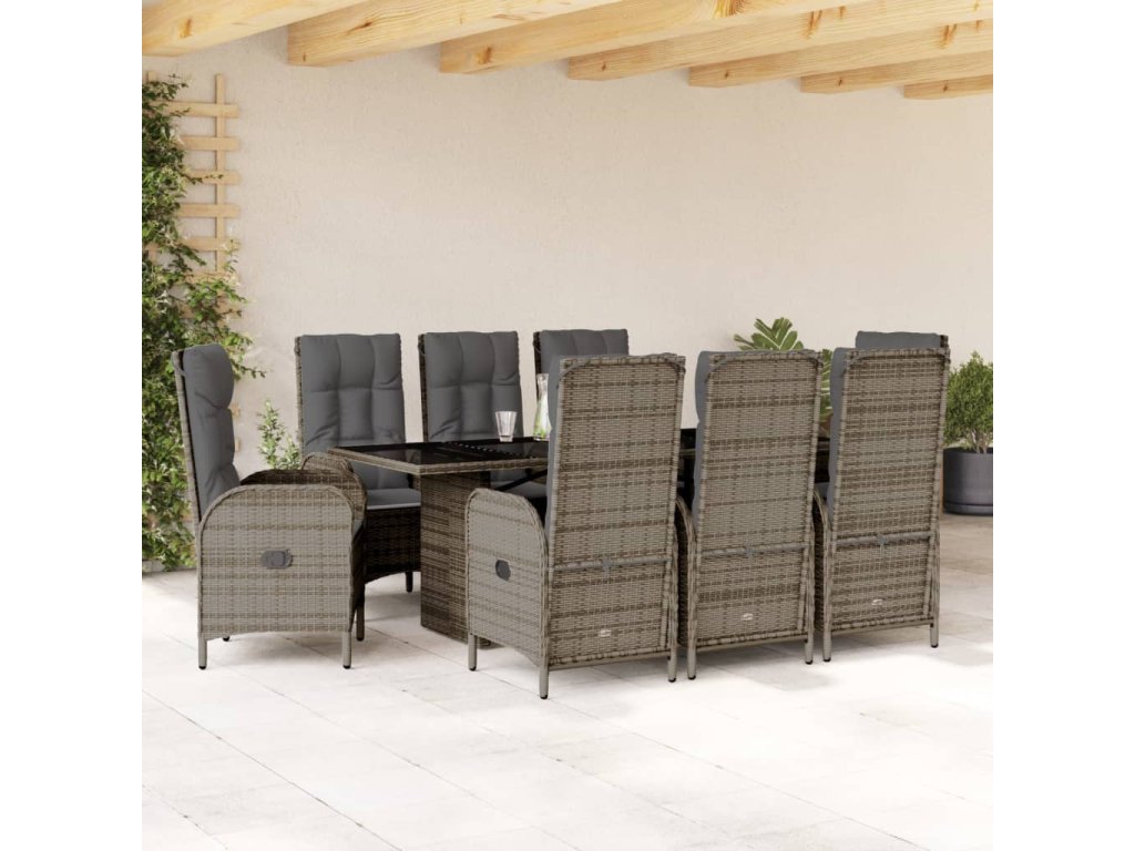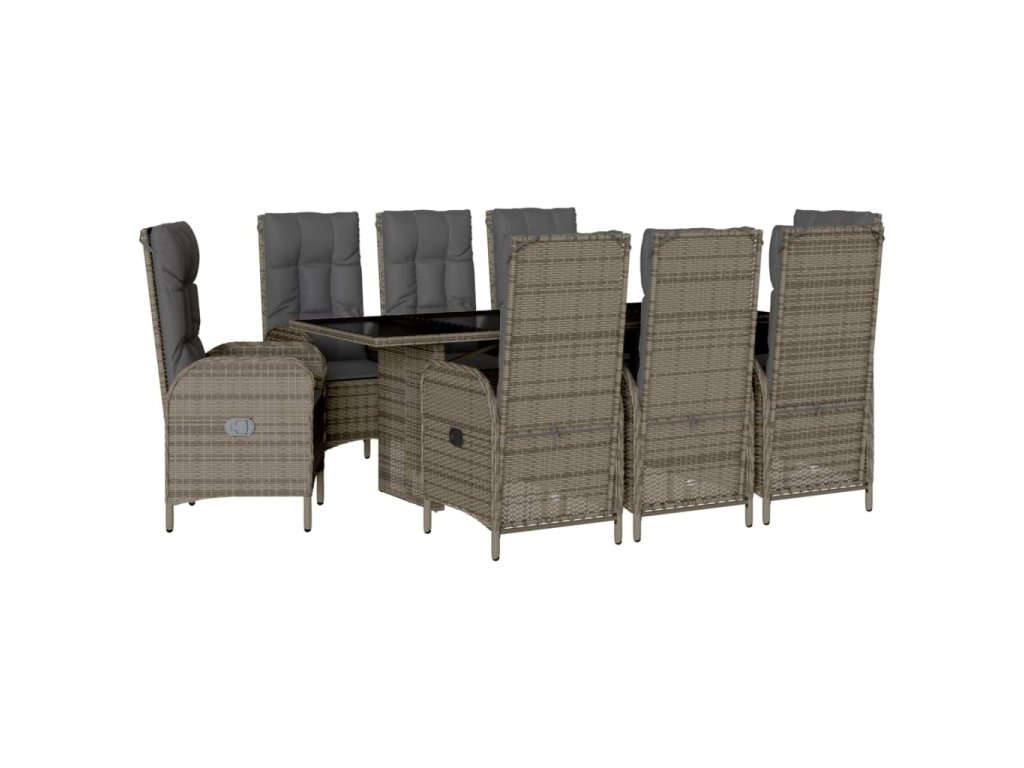 9dílný zahradní jídelní set s poduškami šedý polyratan 3213528
