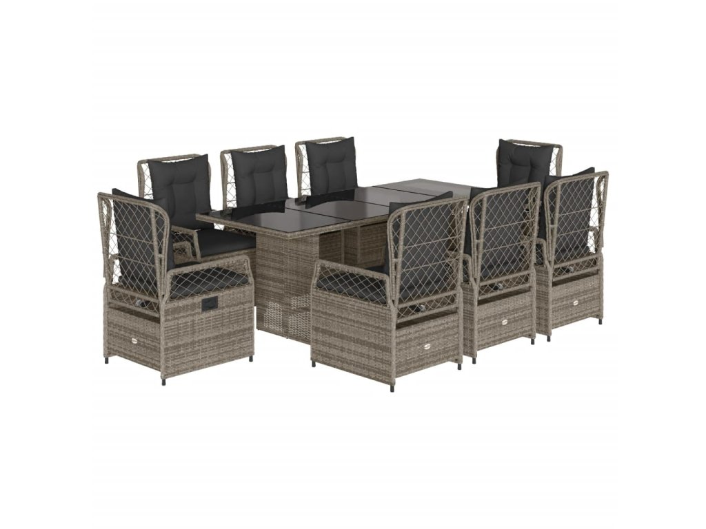 9dílný zahradní jídelní set s poduškami šedý polyratan 3262929