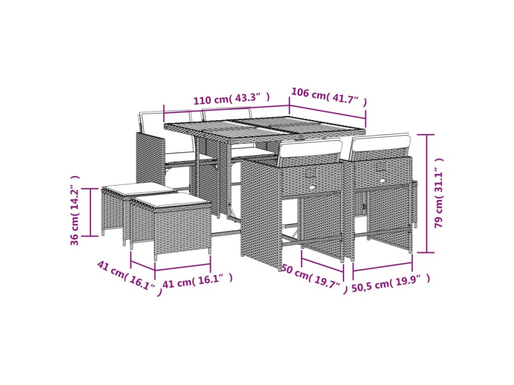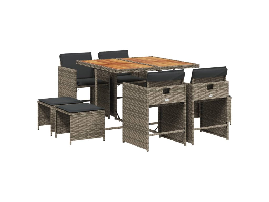 9dílný zahradní jídelní set s poduškami šedý polyratan 3277909
