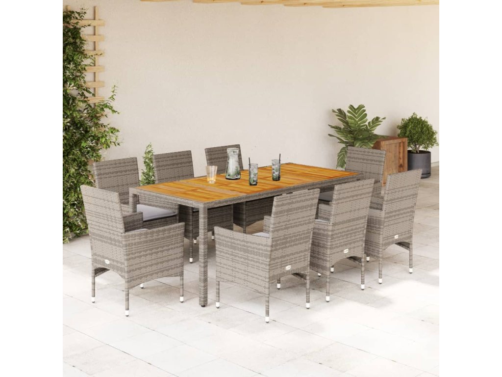 9dílný zahradní jídelní set s poduškami šedý polyratan a akácie 3278680