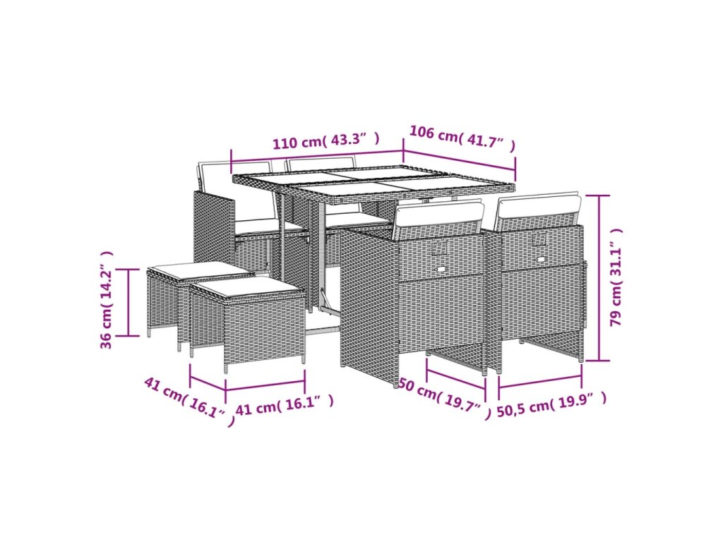 9dílný zahradní jídelní set s poduškami světle šedý polyratan 3210599
