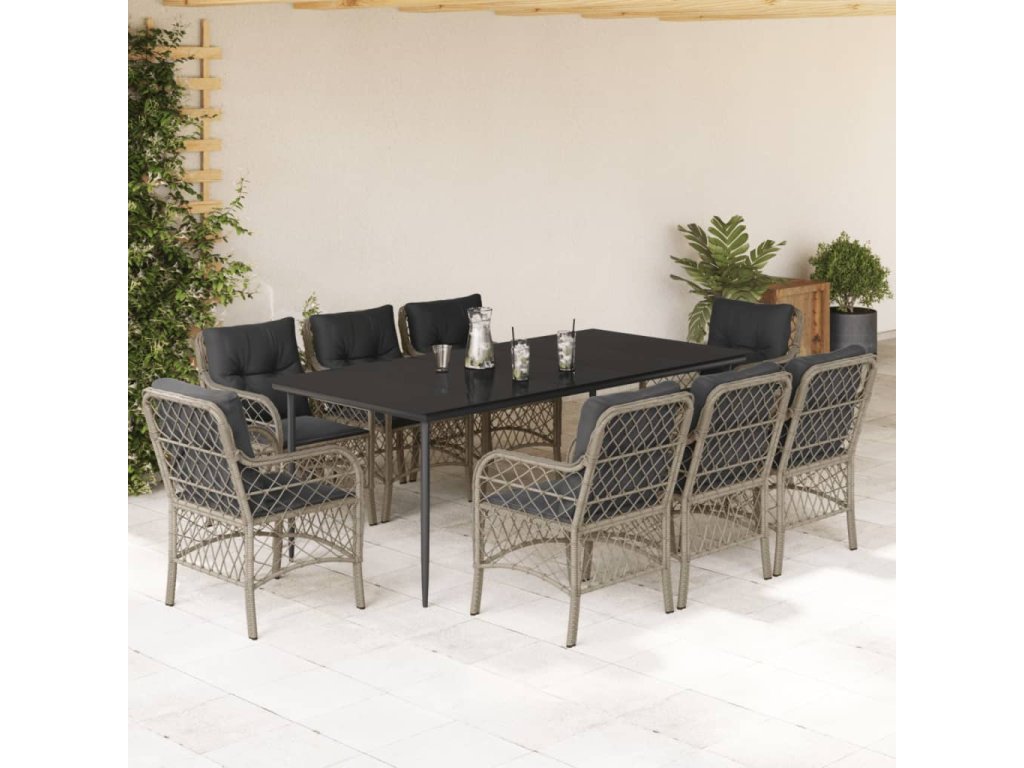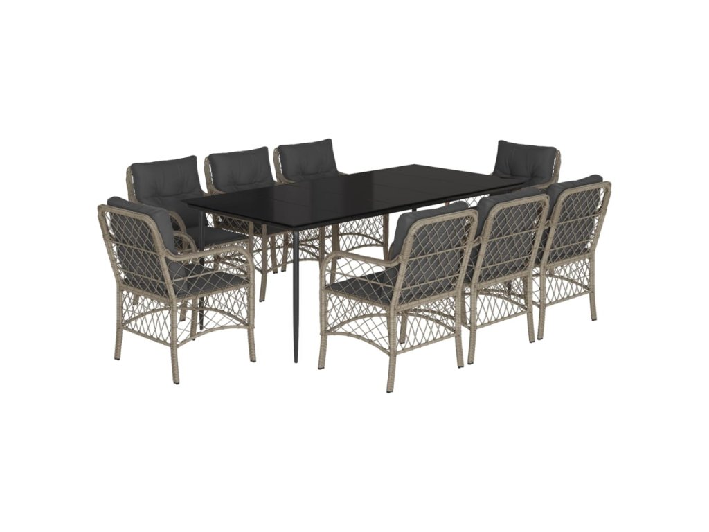 9dílný zahradní jídelní set s poduškami světle šedý polyratan 3212172