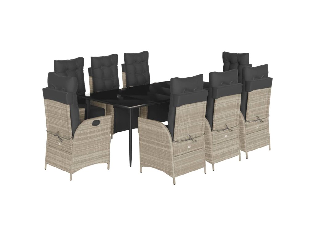 9dílný zahradní jídelní set s poduškami světle šedý polyratan 3213468