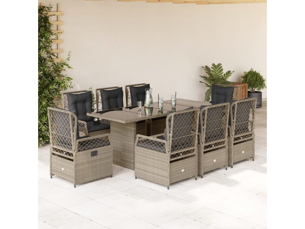 9dílný zahradní jídelní set s poduškami světle šedý polyratan 3262941
