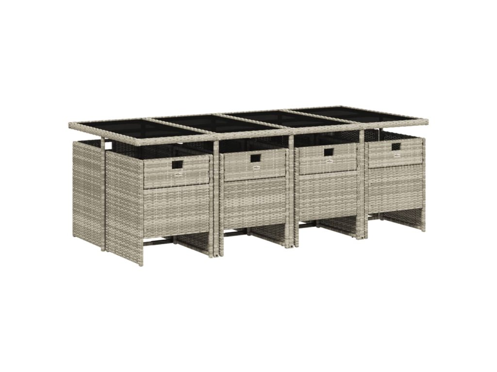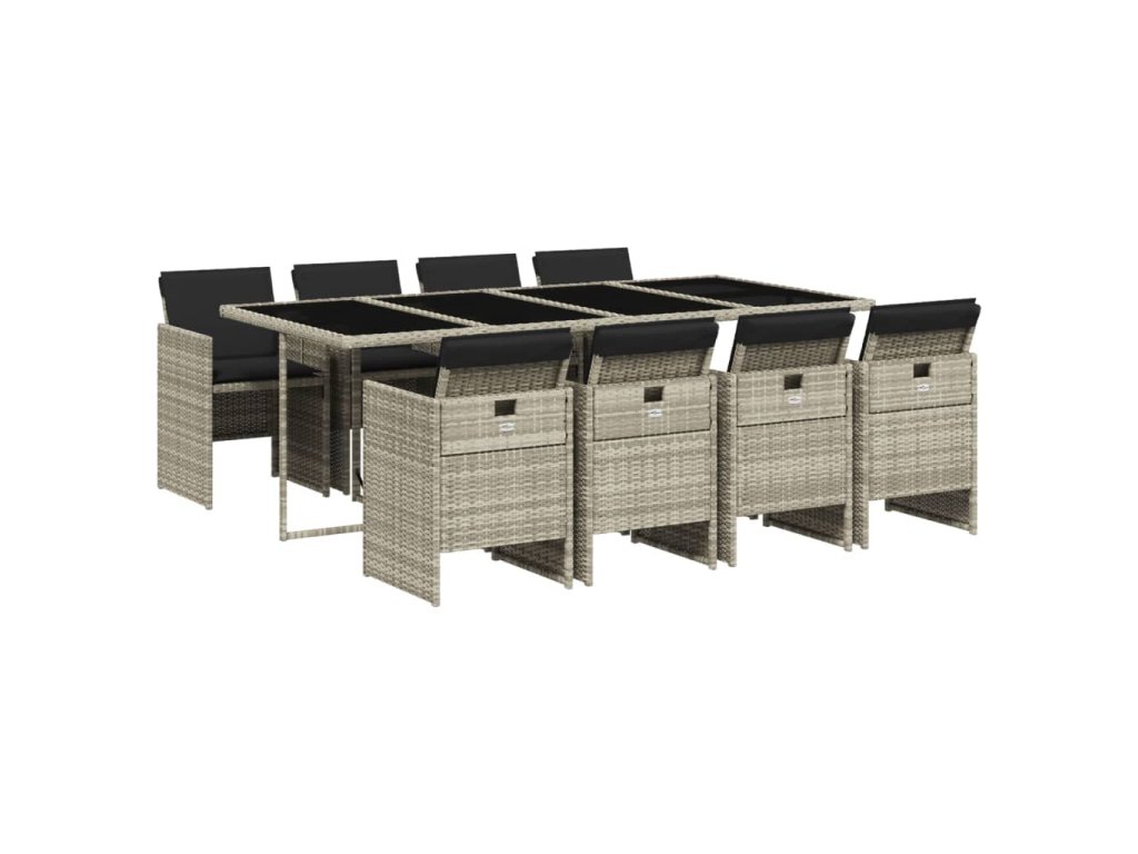 9dílný zahradní jídelní set s poduškami světle šedý polyratan 3277690