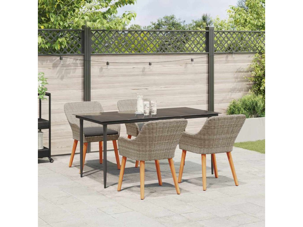 Tato stylová venkovní jídelní souprava je určena pro každého, kdo ocení eleganci a praktické funkce. Perfektně se hodí na venkovní stravování, skvěle spojuje moderní vzhled s užitečnými prvky, což z ní dělá skvělou volbu pro jakýkoli venkovní prostor. Její elegantní design a pohodlná sedadla zvou hosty, aby si užili jídlo venku a vytvořili příjemnou atmosféru pro setkání s přáteli a rodinou.