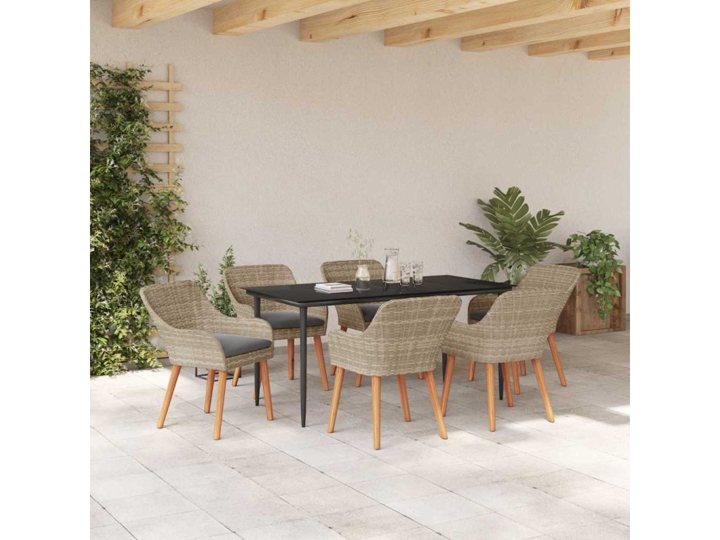 Tato stylová venkovní jídelní souprava je určena pro každého, kdo ocení eleganci a praktické funkce. Perfektně se hodí na venkovní stravování, skvěle spojuje moderní vzhled s užitečnými prvky, což z ní dělá skvělou volbu pro jakýkoli venkovní prostor. Její elegantní design a pohodlná sedadla zvou hosty, aby si užili jídlo venku a vytvořili příjemnou atmosféru pro setkání s přáteli a rodinou.
