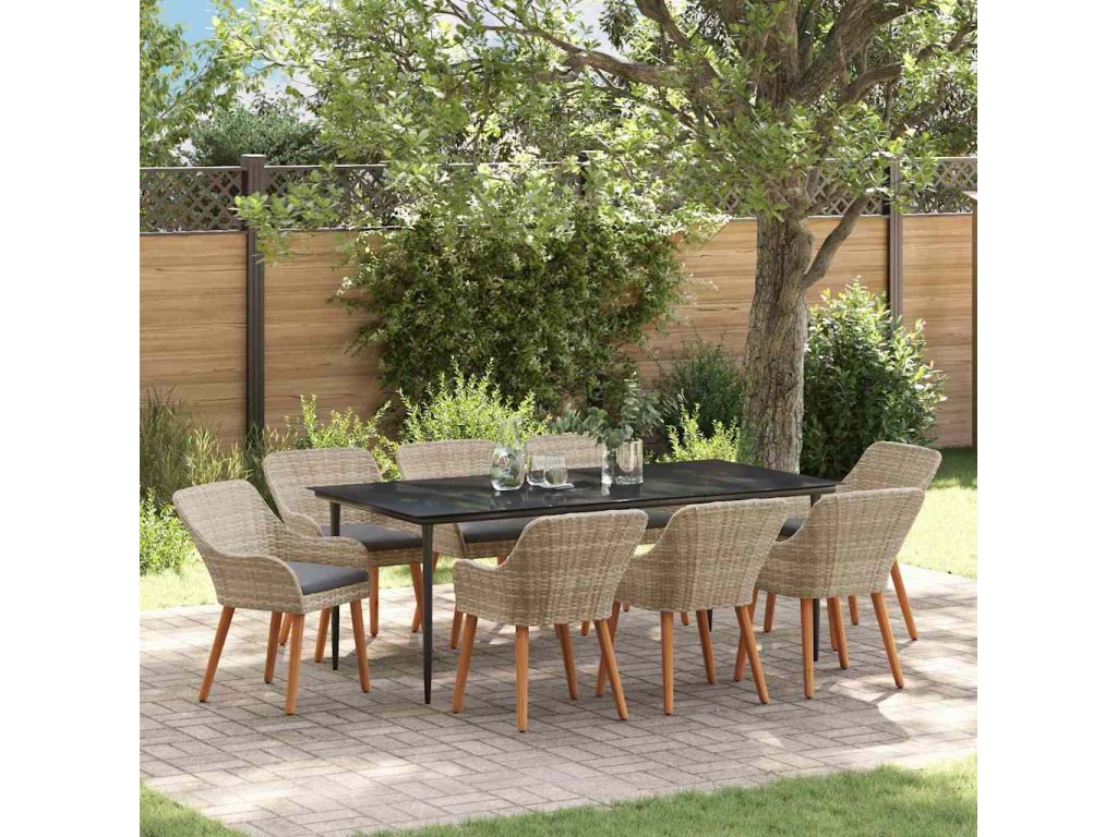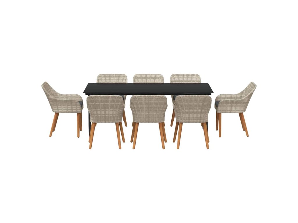 Tato stylová venkovní jídelní souprava je určena pro každého, kdo ocení eleganci a praktické funkce. Perfektně se hodí na venkovní stravování, skvěle spojuje moderní vzhled s užitečnými prvky, což z ní dělá skvělou volbu pro jakýkoli venkovní prostor. Její elegantní design a pohodlná sedadla zvou hosty, aby si užili jídlo venku a vytvořili příjemnou atmosféru pro setkání s přáteli a rodinou.
