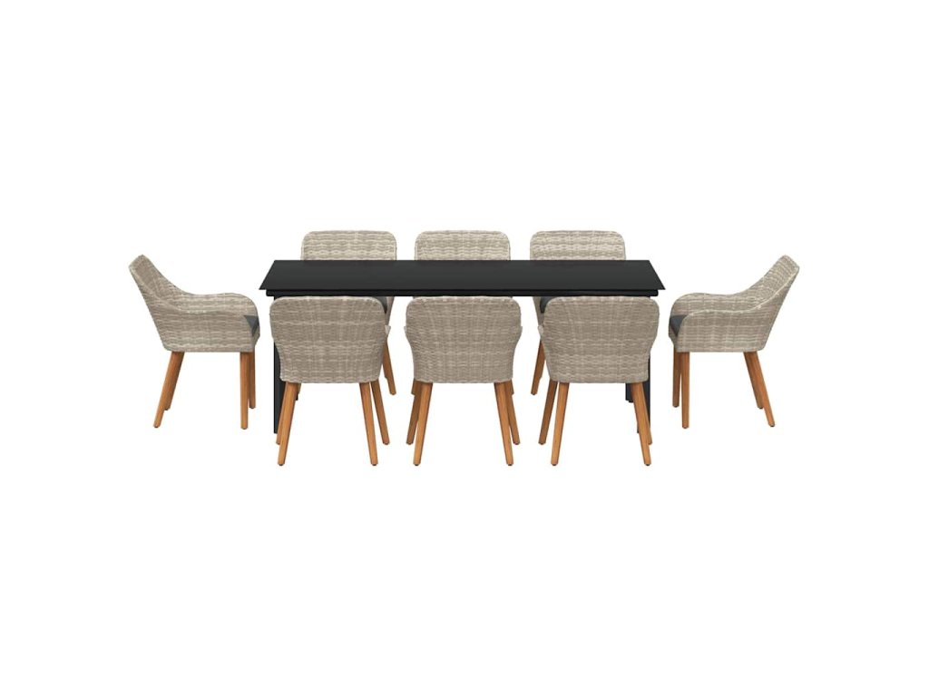 Tato stylová venkovní jídelní souprava je určena pro každého, kdo ocení eleganci a praktické funkce. Perfektně se hodí na venkovní stravování, skvěle spojuje moderní vzhled s užitečnými prvky, což z ní dělá skvělou volbu pro jakýkoli venkovní prostor. Její elegantní design a pohodlná sedadla zvou hosty, aby si užili jídlo venku a vytvořili příjemnou atmosféru pro setkání s přáteli a rodinou.