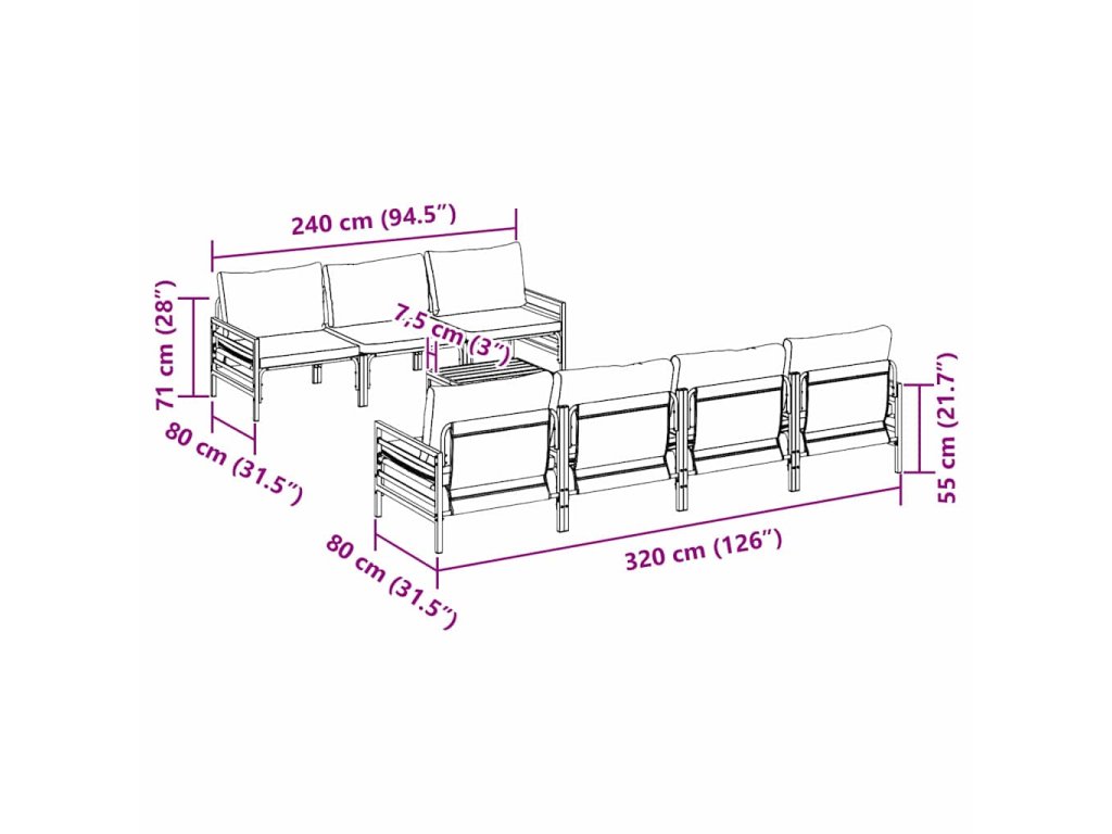 Sada zahradních pohovek 8 pcs Antracitová Ocel & Tkanina 3378957