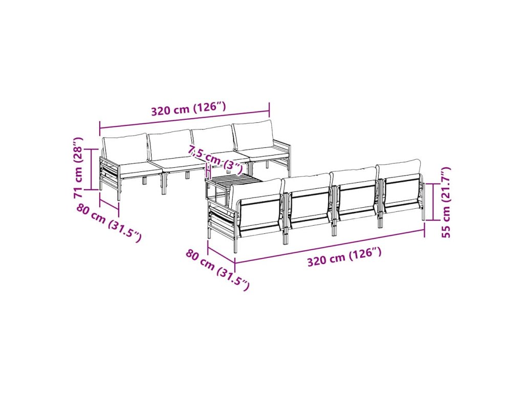 Sada zahradních pohovek 9 pcs Antracitová Ocel & textil 3378958