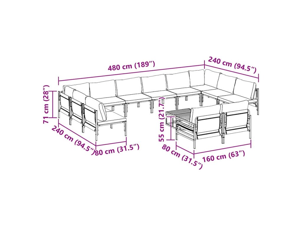 Tato sada zahradních pohovek s polštáři vytváří příjemnou atmosféru, dokonale mísící styl a funkčnost. Byla navržena pro venkovní použití, poskytující pohodlné sezení pro užívání si konverzací nebo relaxačních chvilek. Polštáře přidávají prvek uvolnění, zvyšující zážitek ať už hostíte hosty nebo si užíváte chvíle klidu. Elegantní a moderní design doplňuje jakoukoliv venkovní výzdobu, nabízí jak vizuální přitažlivost, tak pohodlí.