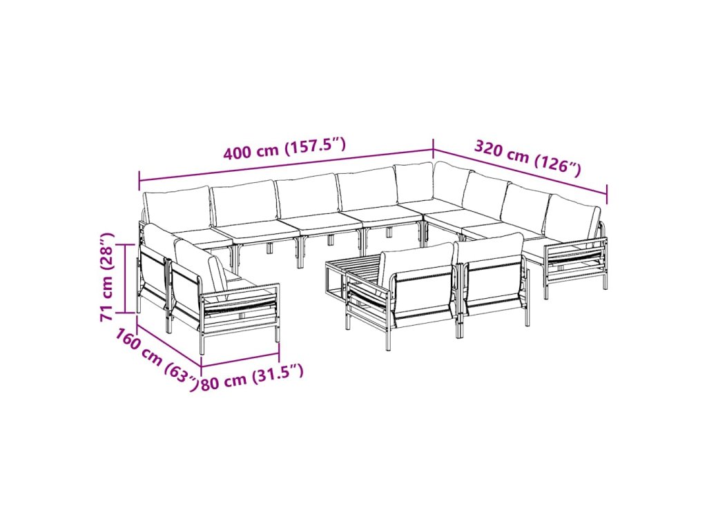 Tento venkovní nábytek s polštáři redefinuje relaxaci ve tvých venkovních prostorech. Kombinující eleganci s trvanlivostí, tento set je navržen pro sofistikované pohodlí. Perfektní pro terasy, zahrady nebo jakýkoli venkovní společenský prostor, spojuje moderní styl s nadčasovým kouzlem, vyzývající k uklidňující i energizující atmosféře v jakémkoli prostředí.