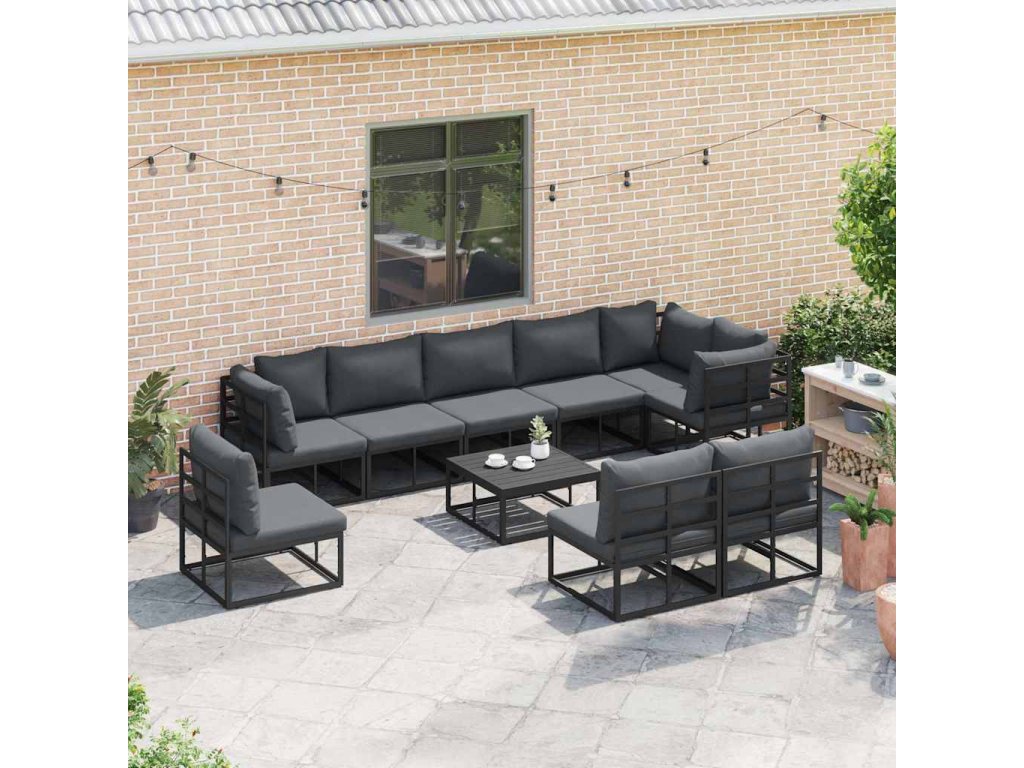 Sada zahradních pohovek s polštářem 10 pcs Černá Hliník 3378877
