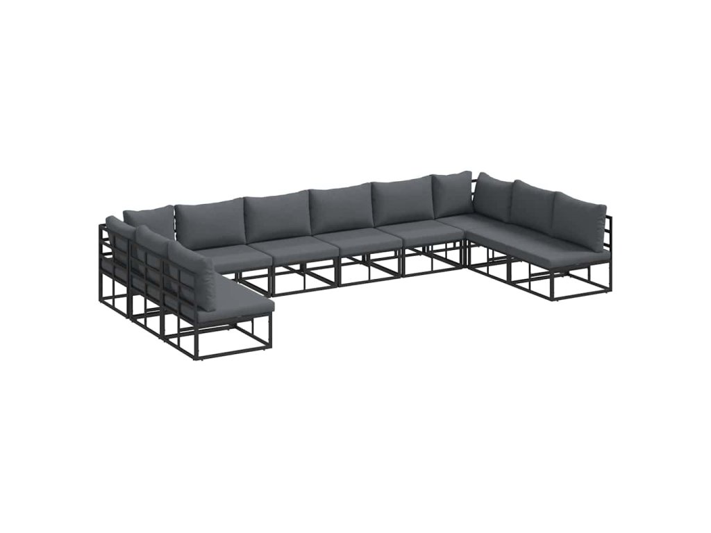 Sada zahradních pohovek s polštářem 10 pcs Černá Hliník 3378902
