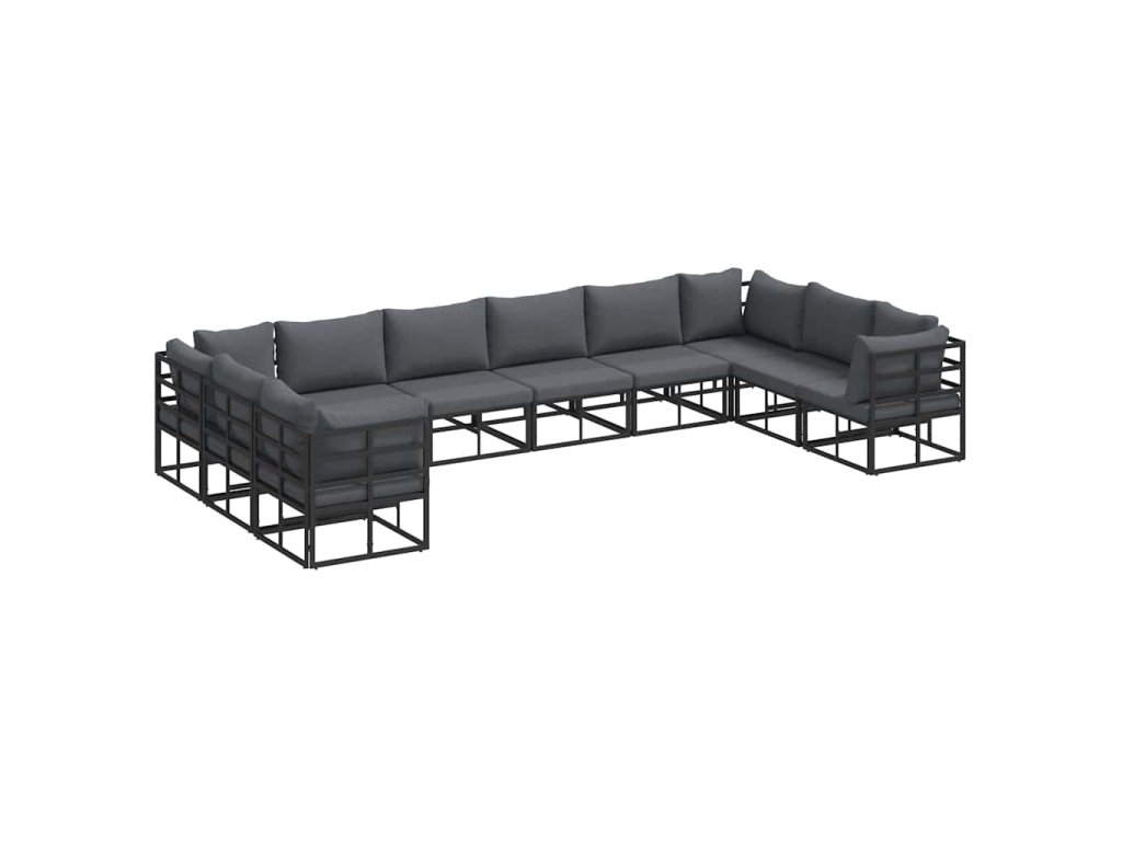 Sada zahradních pohovek s polštářem 10 pcs Černá Hliník 3378906