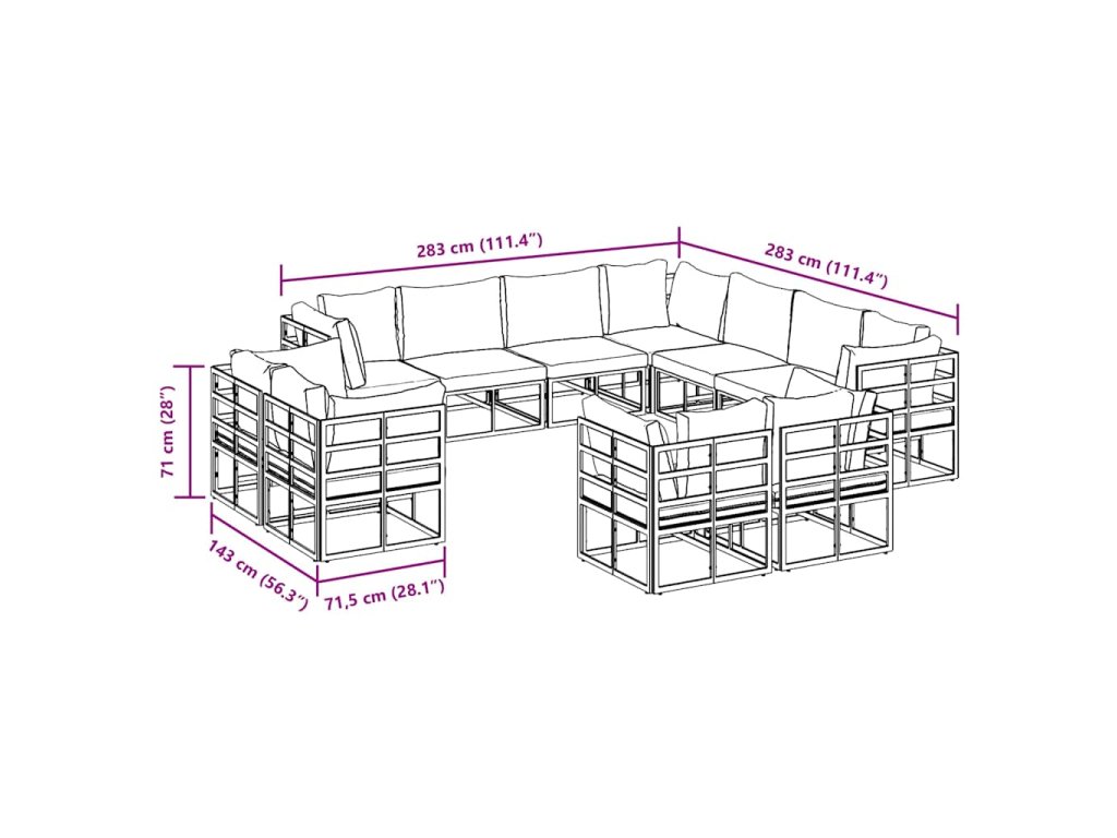 - Prémiový hliníkový rám: Tato souprava pohovek má robustní hliníkový rám s elegantní práškově lakovanou povrchovou úpravou, která poskytuje spolehlivou a pevnou strukturu, jež odolává venkovním prvkům a zachovává vizuální přitažlivost. Její moderní povrch zajišťuje trvalou trvanlivost, což znamená, že pohovka si zachovává svou integritu při různých povětrnostních podmínkách, což ji činí nekompromisní volbou pro jakékoli moderní venkovní prostředí.