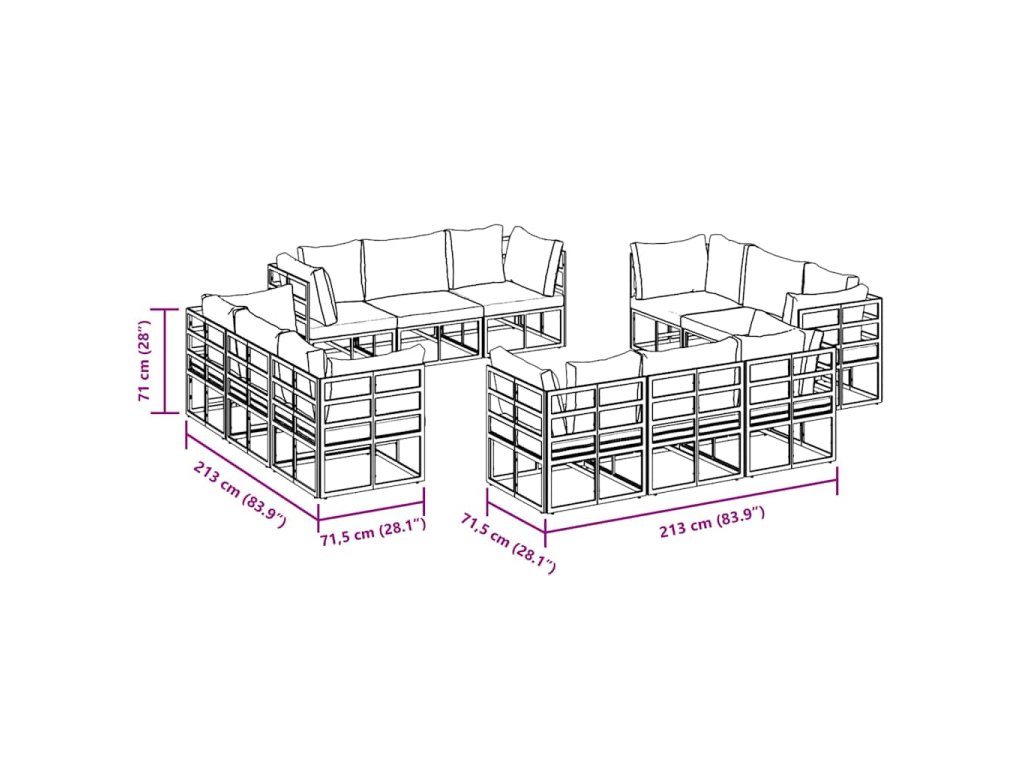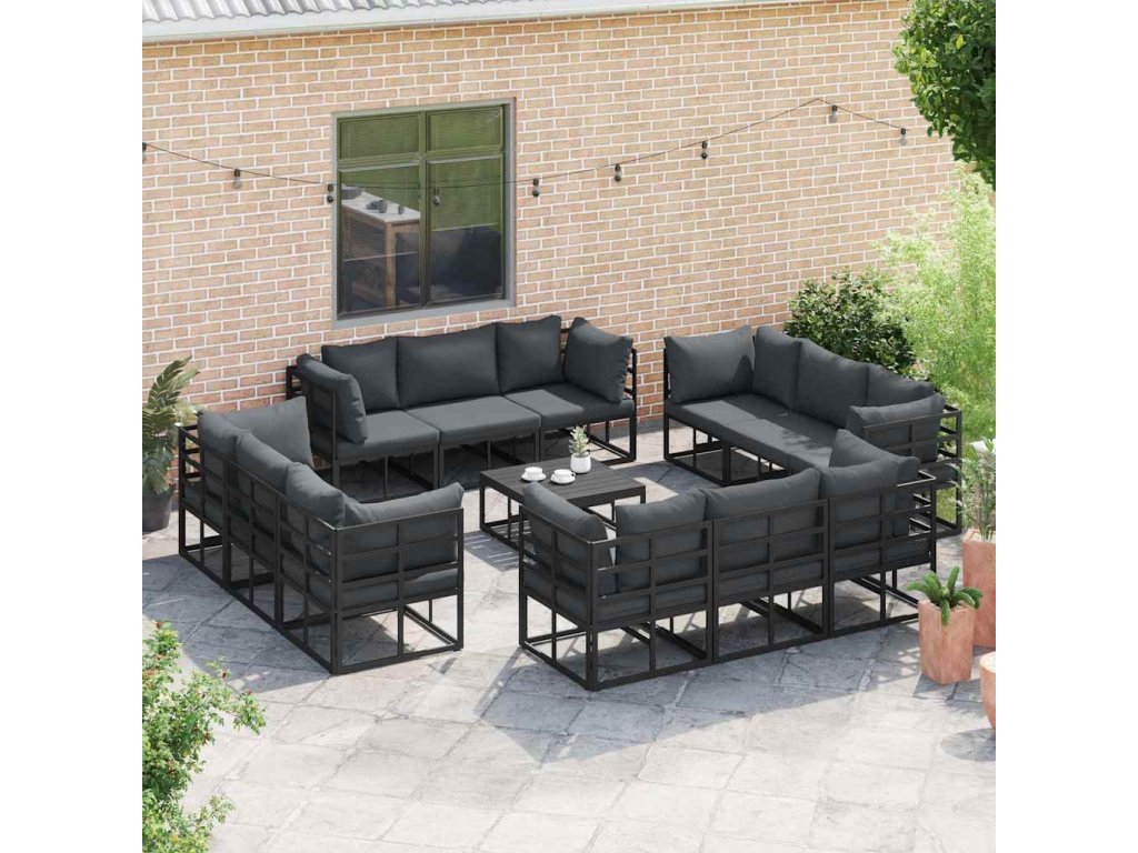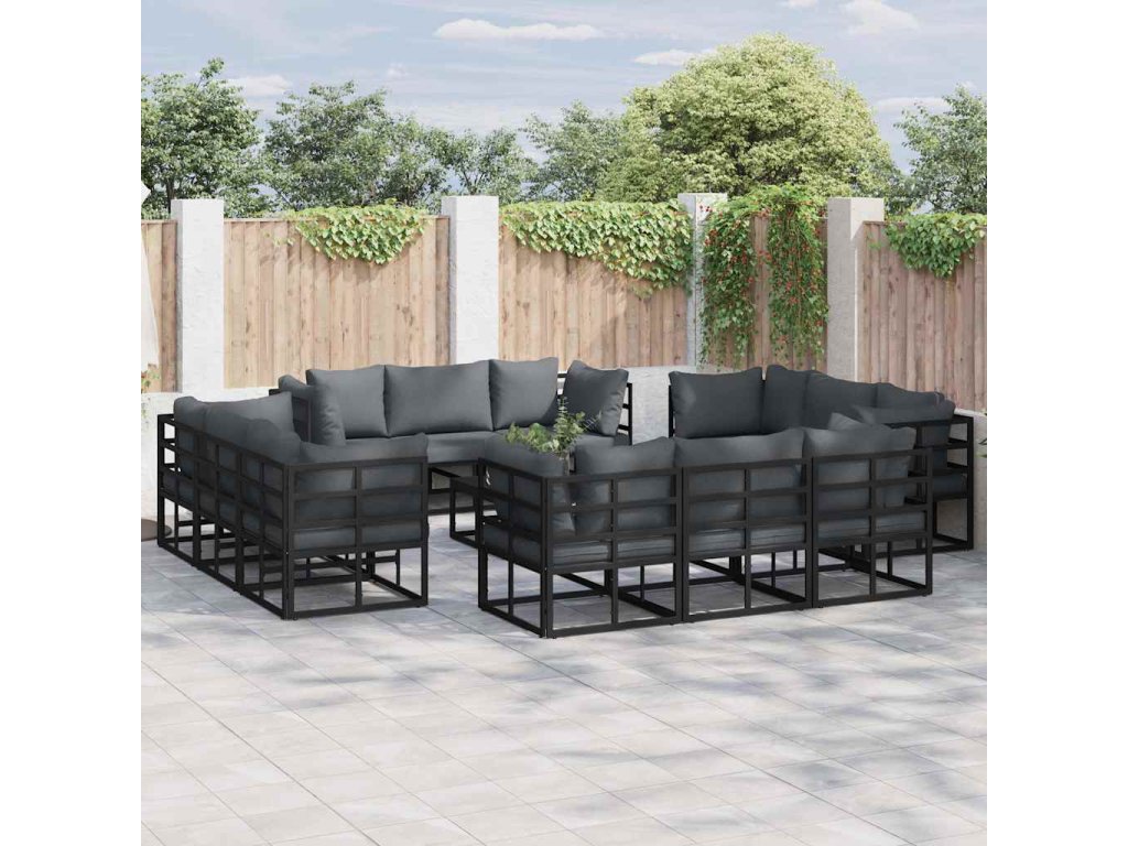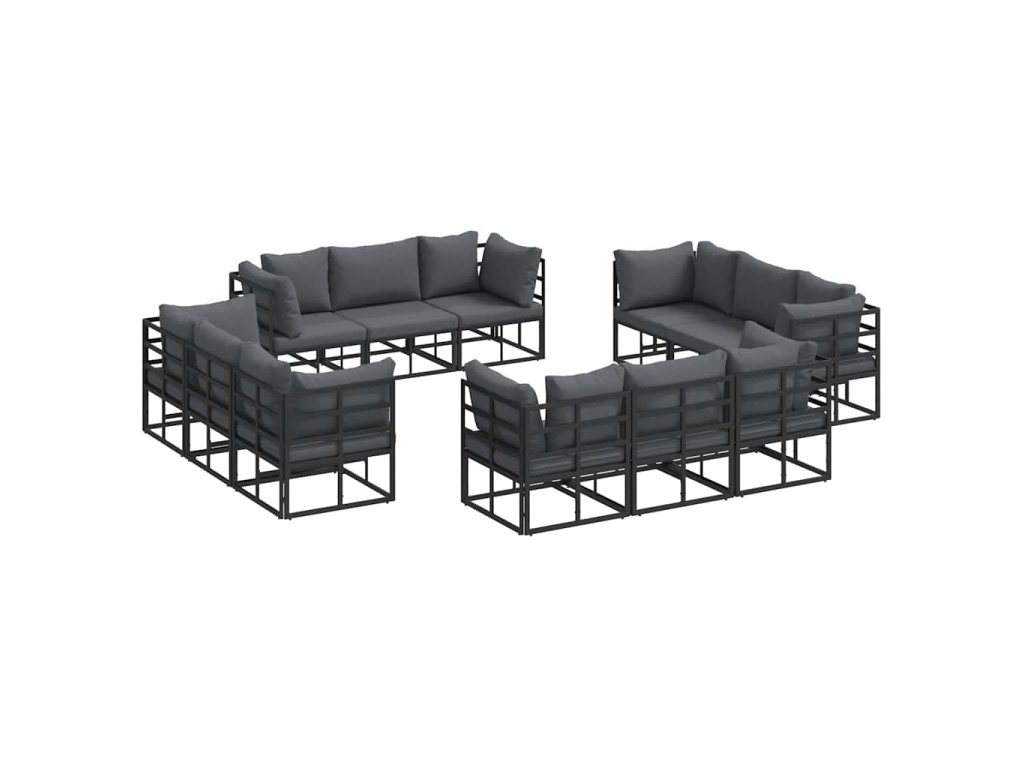 Sada zahradních pohovek s polštářem 12 pcs Černá Hliník 3378844