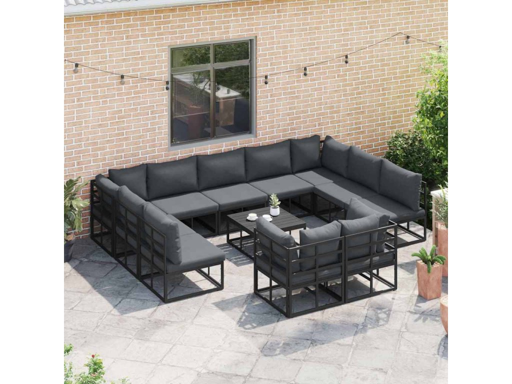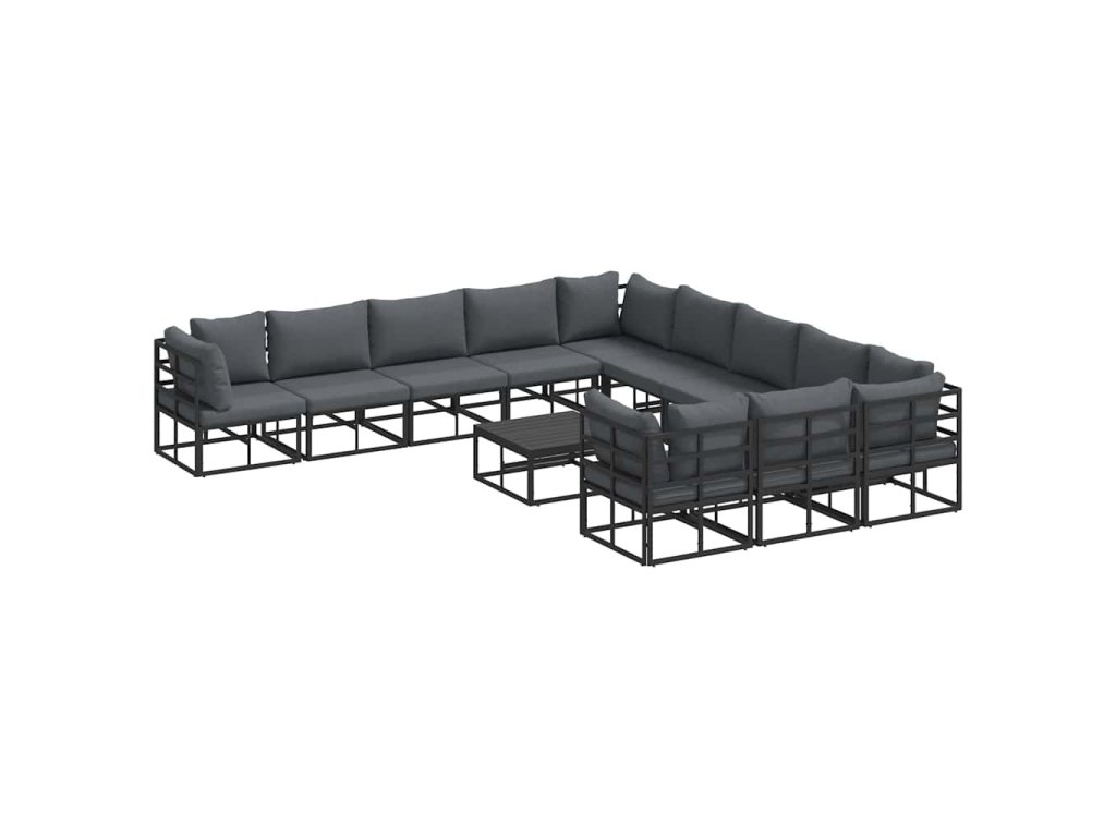 Sada zahradních pohovek s polštářem 12 pcs Černá Hliník 3378923