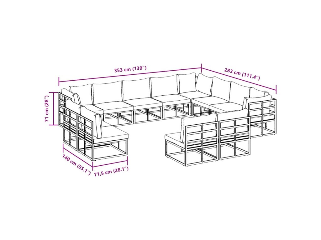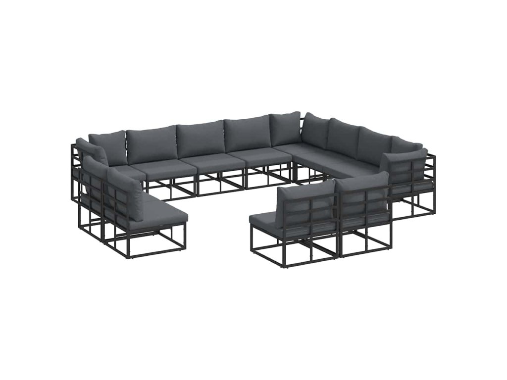 Sada zahradních pohovek s polštářem 12 pcs Černá Hliník 3378928