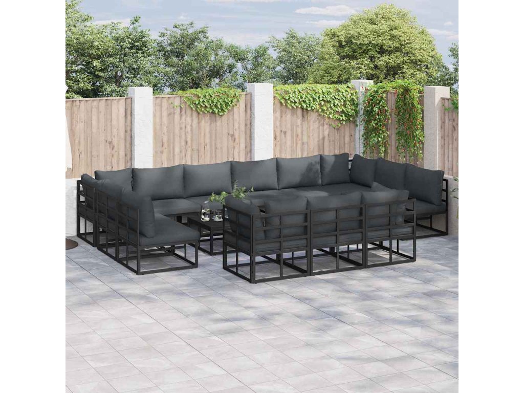 Sada zahradních pohovek s polštářem 13 pcs Černá Hliník 3378926