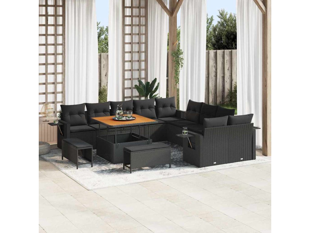 Sada zahradních pohovek s polštářem 13 pcs Černá polyratan 3363744