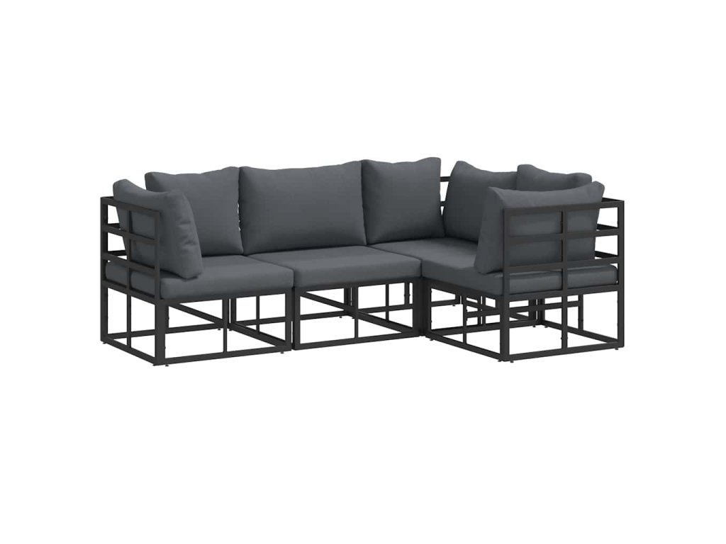 Sada zahradních pohovek s polštářem 4 pcs Černá Hliník 3378864