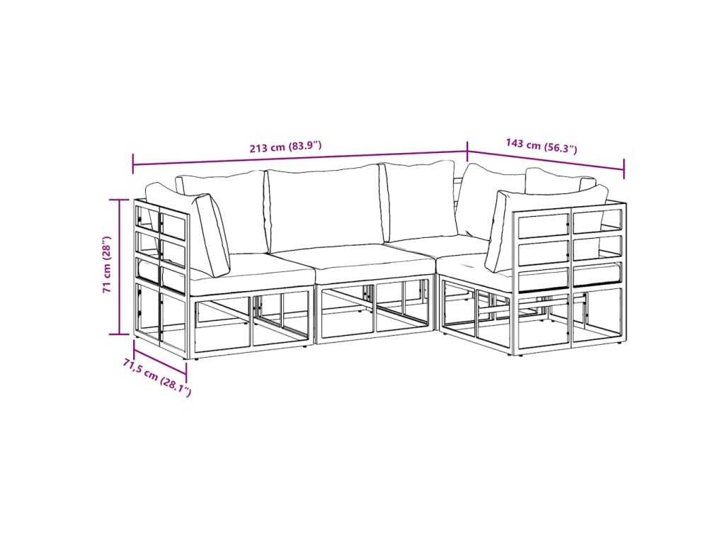Tento elegantní zahradní pohovkový set přináší kapku modernity do jakéhokoli venkovního prostoru, specificky navrženého pro zahradní a terasové uspořádání. Jeho hladké a jednoduché linie spojené s moderním stylem ho činí atraktivním a funkčním. Navržen pro ty, kdo milují relaxaci ve venkovních prostředích, tento zahradní set bez námahy spojuje pohodlí se sofistikovaným vzhledem - ideální pro lenošení, pořádání setkání nebo užívání si klidných, poklidných odpolední obklopených krásou přírody. Praškově lakovaný hliníkový rám nabízí nepopiratelně robustní vzhled, poskytující spolehlivou podporu a přitom doplňující celkový minimalismus - ideální volba pro všestranné využití napříč růzými exteriéry.