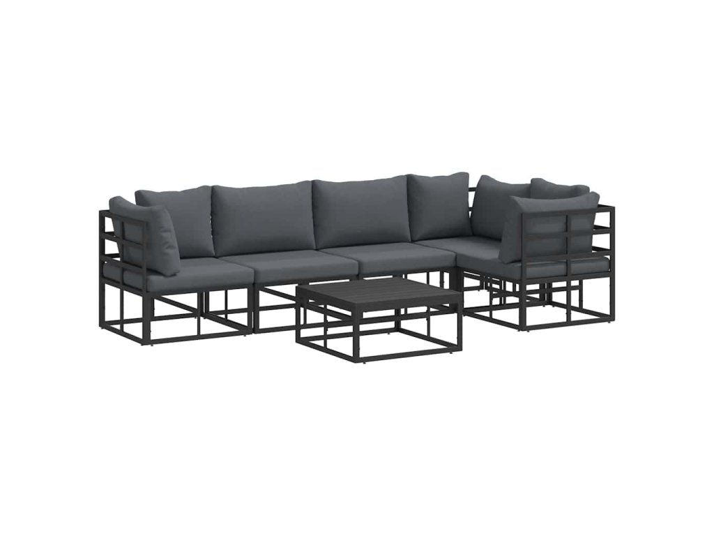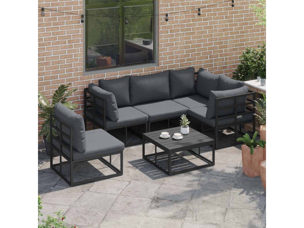 - Hliníkový rám: Tato sada zahradního gauče je vyrobená z odolného hliníku, který je lehký a trvanlivý. Díky tomu vydrží různé povětrnostní podmínky a dlouho ti poslouží. Její štíhlý profil dodává moderní vzhled, co se hodí do jakéhokoli venkovního prostoru.