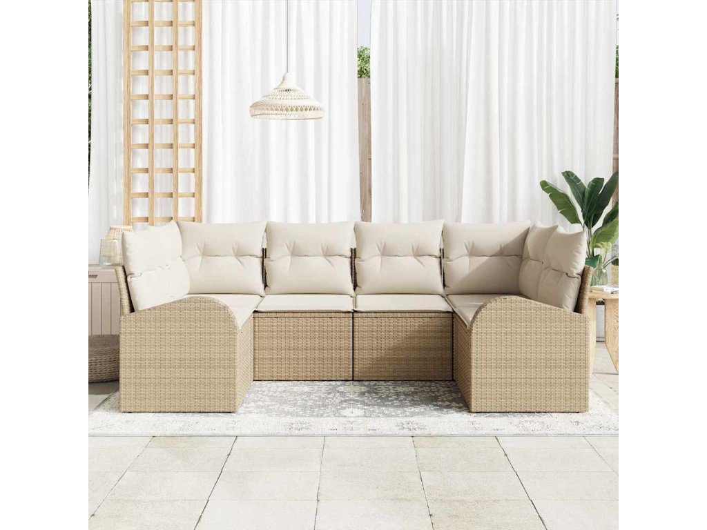 Sada zahradních pohovek s polštářem 6 pcs Béžová Poly ratan 3354850