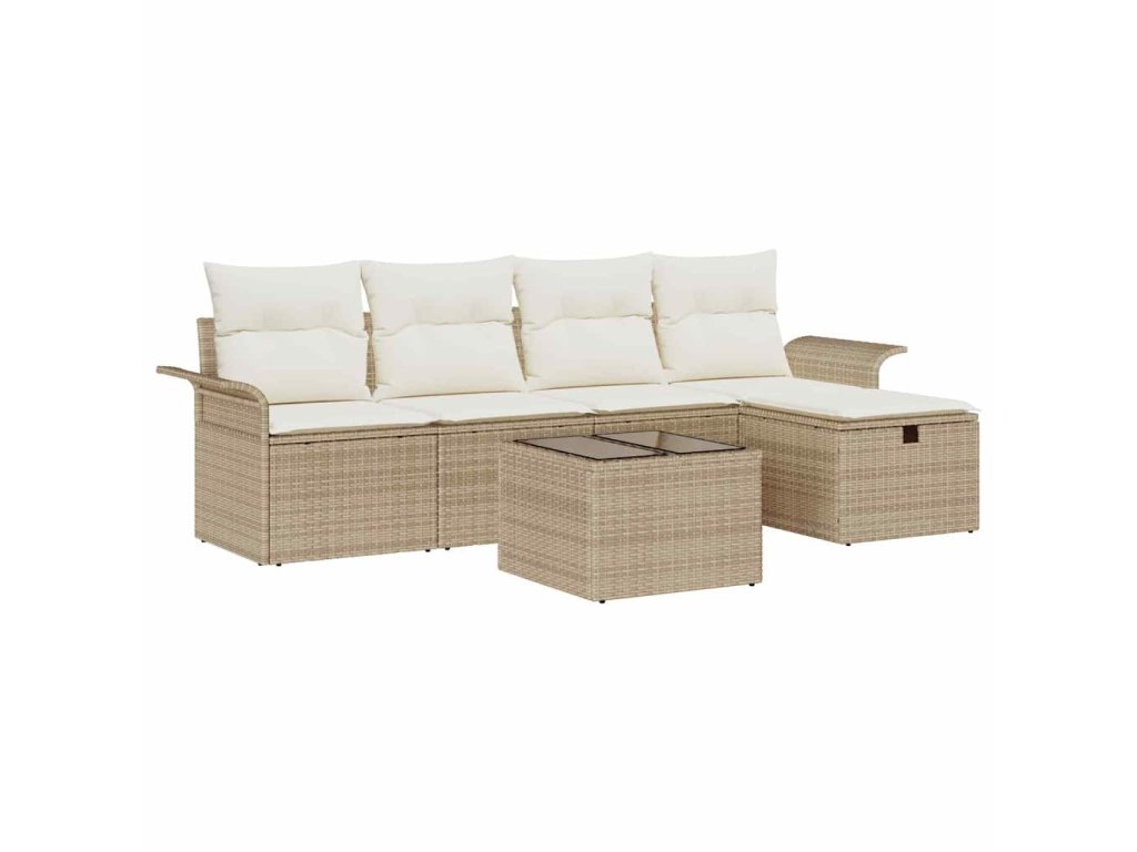 Sada zahradních pohovek s polštářem 6 pcs Béžová Poly ratan 3360202