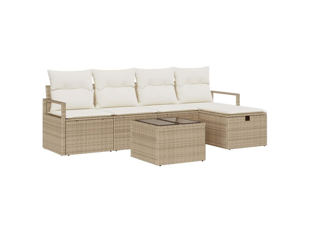 Sada zahradních pohovek s polštářem 6 pcs Béžová Poly ratan 3360502
