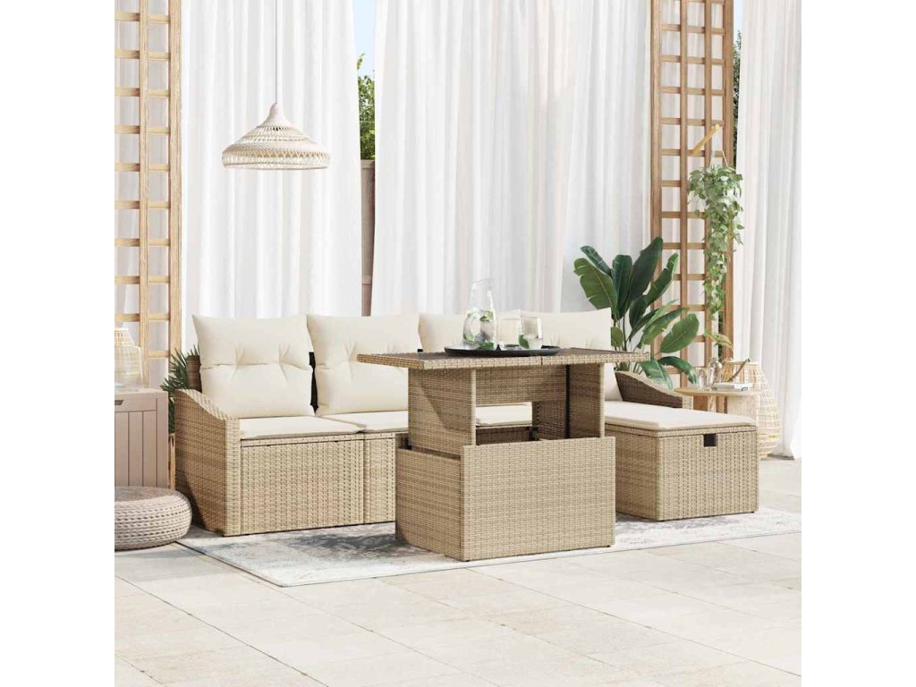 Sada zahradních pohovek s polštářem 6 pcs Béžová polyratan 3361160