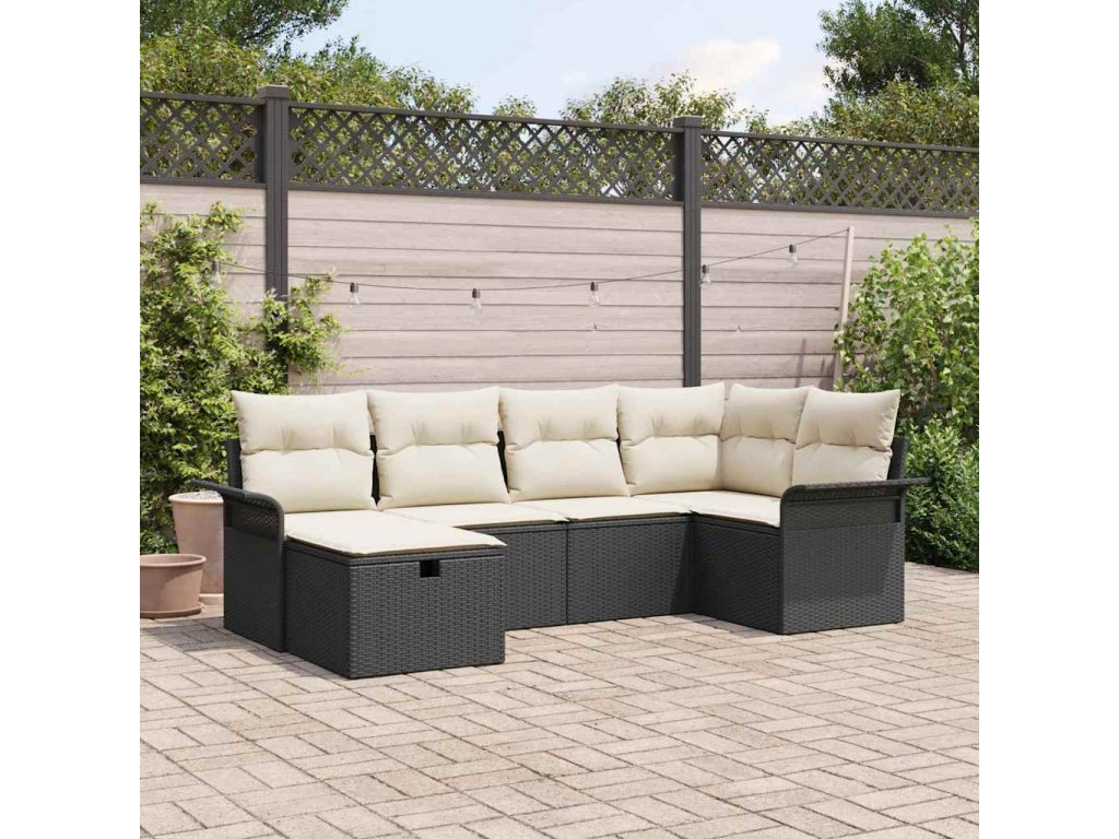 Sada zahradních pohovek s polštářem 6 pcs Černá Poly ratan 3360208