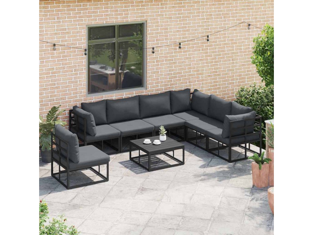 - Hliníkový rám: Silný hliníkový rám zaručuje skvělou trvanlivost a zajistí, že souprava zůstane stabilní i v různém počasí. Je práškově lakovaný, což zvyšuje jeho odolnost a prodlužuje životnost, takže se o něj nemusíte bát.